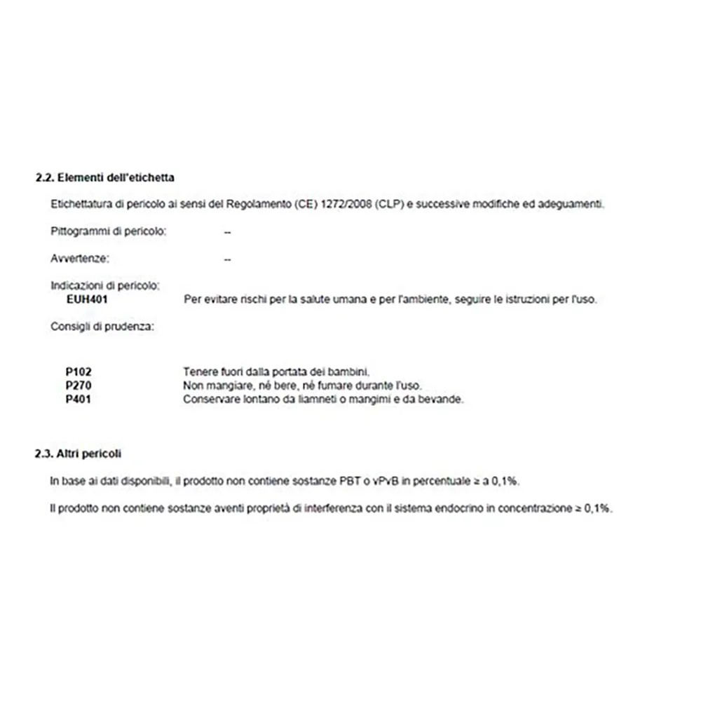 | Adatto per agricoltura biologica: | Non adatto per agricoltura biologica |