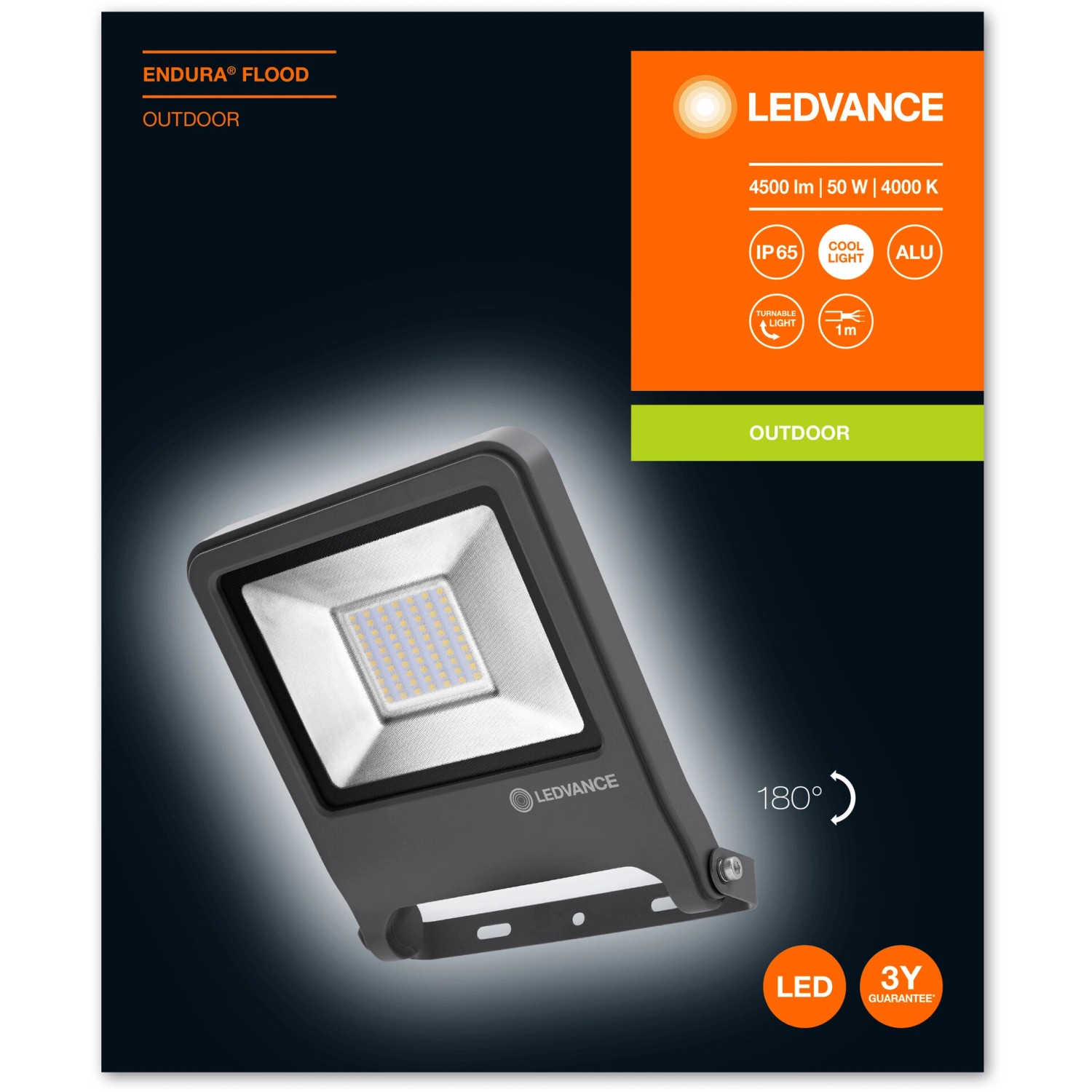 Il Proiettore LED Endura Flood 50 W di Ledvance è una scelta potente ed efficiente per l`illuminazione esterna. Con un impressionante flusso luminoso di 4500 lumen e un angolo di distribuzione di 120°, garantisce una visibilità ottimale per spazi esterni come giardini, garage e facciate. Grazie alla protezione IP65, è ideale per l`uso in ambienti difficili, resistendo a polvere e acqua. Il design compatto e leggero permette un`installazione rapida, mentre il risparmio energetico fino all`80% rispetto ai proiettori alogeni lo rende una scelta sostenibile.