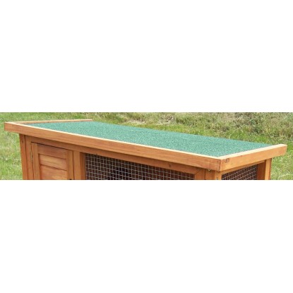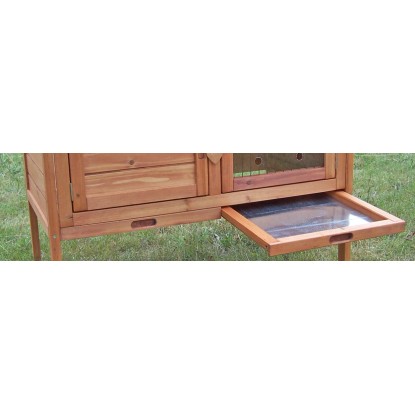 Ogni dettaglio è studiato per garantire funzionalità e praticità. Le pareti hanno uno spessore di 10 mm e la griglia galvanizzata a maglia 1 x 1 cm assicura robustezza e sicurezza. Il legno utilizzato è certificato FSC, a garanzia di una gestione sostenibile delle foreste, mentre il tetto bitumato a monopendenza, di colore verde, protegge efficacemente dalla pioggia e dalle intemperie. La pulizia risulta semplice e veloce grazie al cassetto raccogli deiezioni in plastica lavabile con acqua, dalle dimensioni di 78 x 37 x 3 cm. Inoltre, la botola di accesso posta sul tetto consente di raggiungere facilmente l`intero spazio interno, mentre un`anta esterna permette l`accesso diretto alla zona notte con misure di 22 x 25 cm. All`interno è presente un passaggio di 15 x 22 cm che collega l`area principale con la parte notte, offrendo agli animali comfort e libertà di movimento.