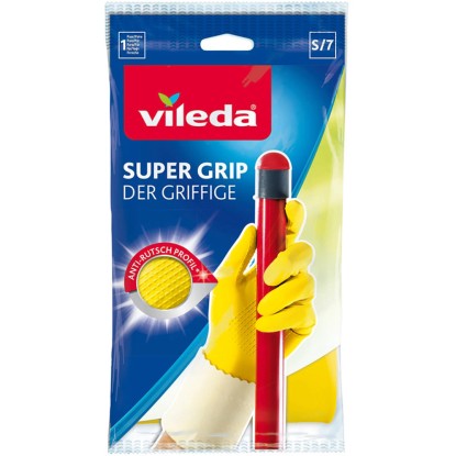 I guanti in lattice antiscivolo Vileda Super Universal Grip taglia S di colore giallo offrono una soluzione ideale per affrontare con sicurezza tutte le faccende domestiche. Questi guanti metteranno a disposizione una presa extra sicura e un profilo speciale, garantendo una presa affidabile su ogni superficie. Con lo speciale rivestimento interno ComfortPlus, permettono di godere di un alto assorbimento dell`umidità e di una sensazione confortevole anche durante le attività prolungate. La confezione contiene 1 paio di guanti.