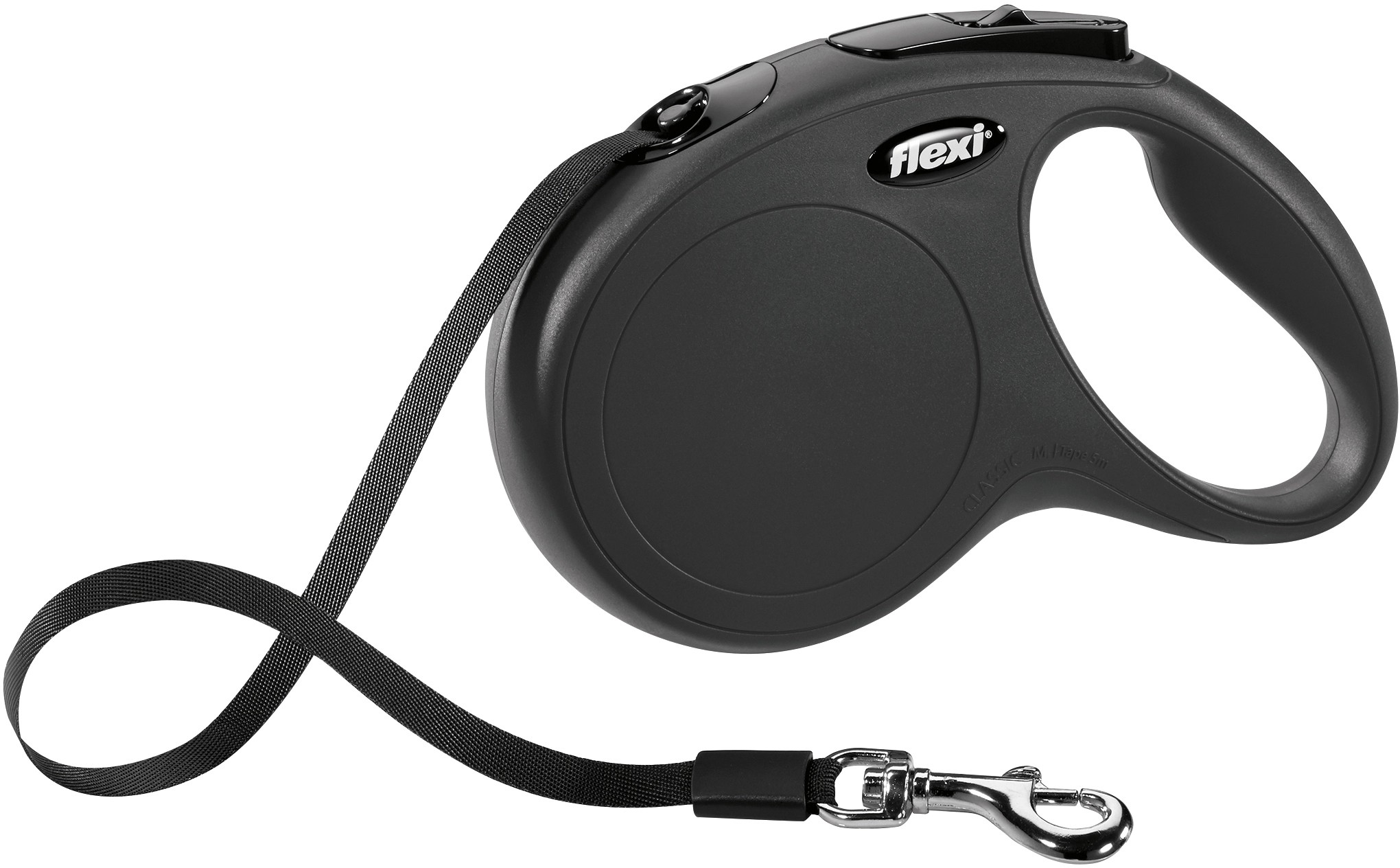 Il guinzaglio avvolgibile Flexi New Classic, dal design moderno e semplice, è in grado di combinare i vantaggi tradizionali di un guinzaglio flexi con una funzionalità moderna: gli accessori come il Multi Box e il sistema di illuminazione a LED possono essere applicati anche al modello flexi più classico. Con fettuccia protettiva di 5 m con elementi riflettenti, è caratterizzato da un sistema frenante a corsa breve e un gancio cromato.
