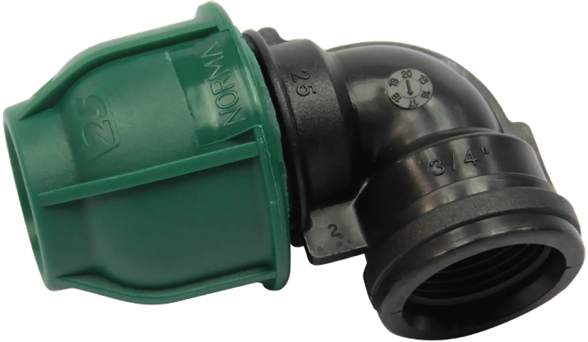 Raccordo a compressione per tubo da 25 mm per filetto da 1/2" femmina, pressione di lavoro massima 10 Bar