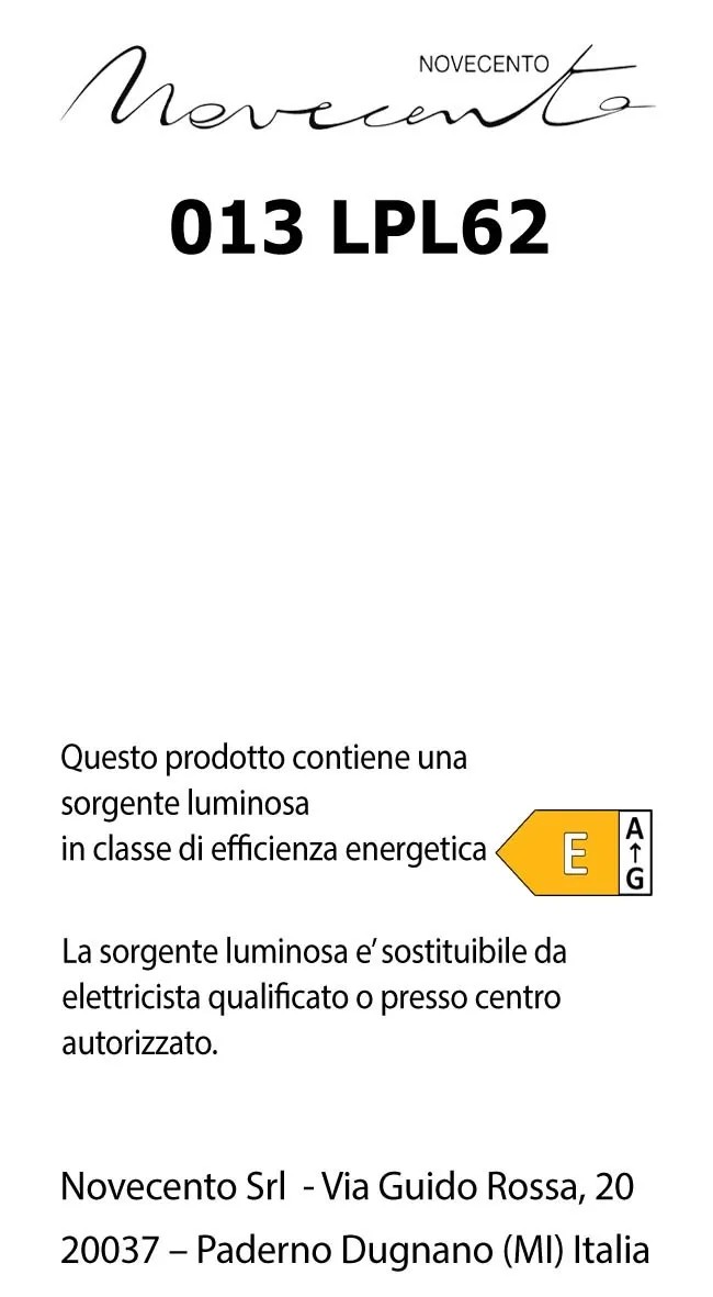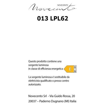La lampada Ares è un prodotto contenitore che include una sorgente luminosa con classe energetica E sostituibile da elettricista certificato o presso un centro certificato.