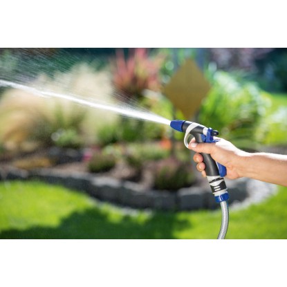 Il getto è regolabile a piacere, da tutto chiuso (concentrato) a tutto aperto (diffuso a ventaglio). Completa di morbida impugnatura antisciolo per un lavoro confortevole.