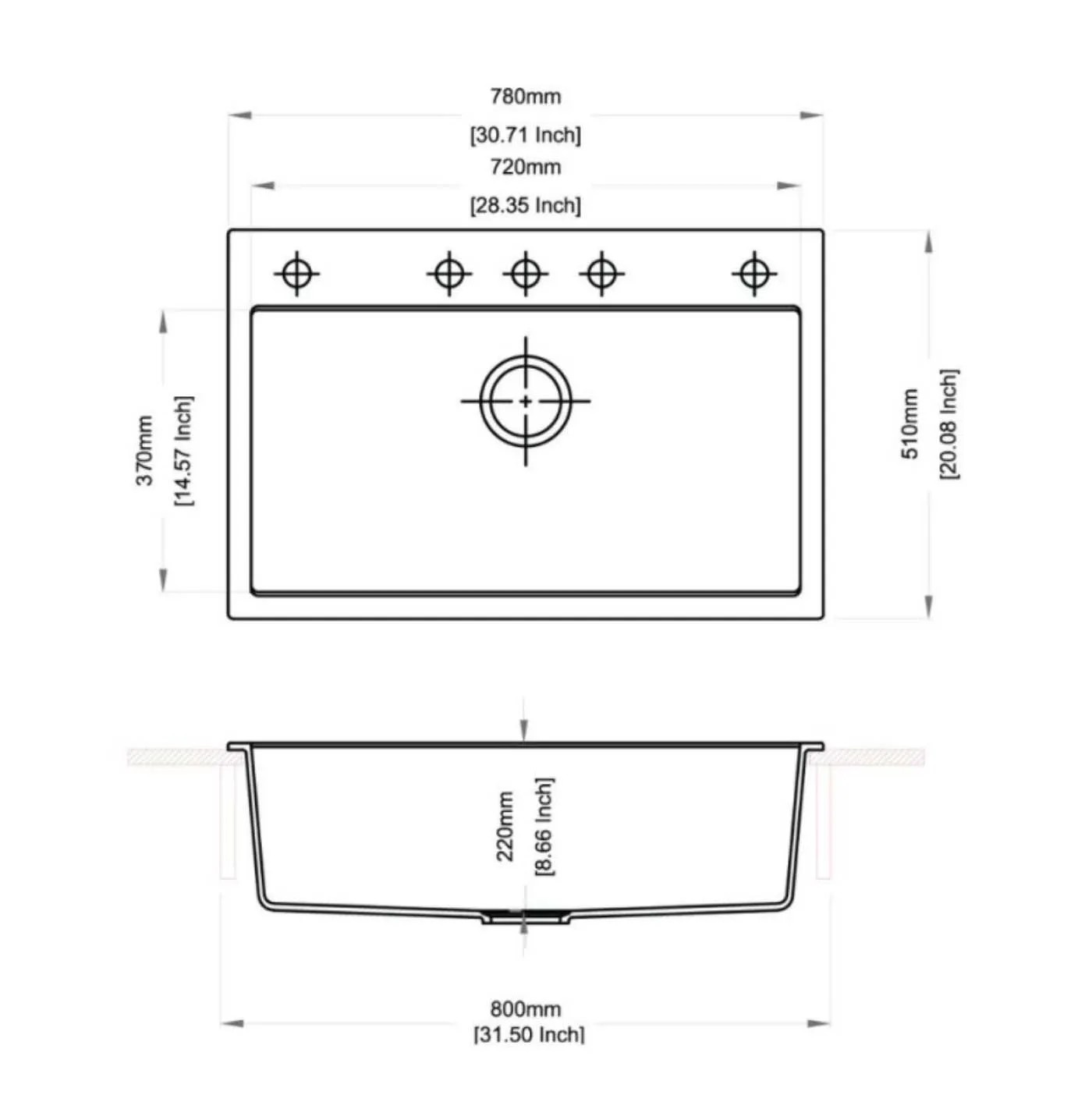 Il lavello da incasso in quarzo nero con una vasca è una scelta elegante e pratica per la tua cucina. Con una profondità di vasca di 20 cm, offre ampio spazio per lavare stoviglie di varie dimensioni in modo comodo e efficiente.