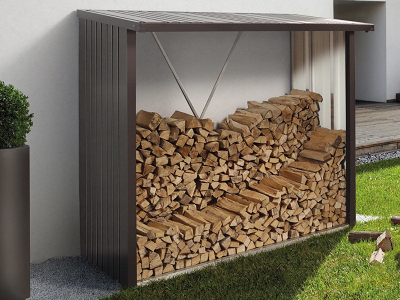 La legnaia Woodstock è una soluzione pratica e moderna per riporre la legna. In alternativa, può anche essere utilizzata per riporre mobili e attrezzi da giardino. Offre la possibilità di fissaggio al muro e gode di ottima stabilità e di elevata resistenza al carico neve. Costruita in lamiera di acciaio zincata a caldo, verniciata a forno con vernice poliammidica, è dotata di bulloni e cerniere in acciaio inox. Il montaggio risulta facile grazie alle istruzioni illustrate. Inoltre non necessita di alcuna manutenzione.