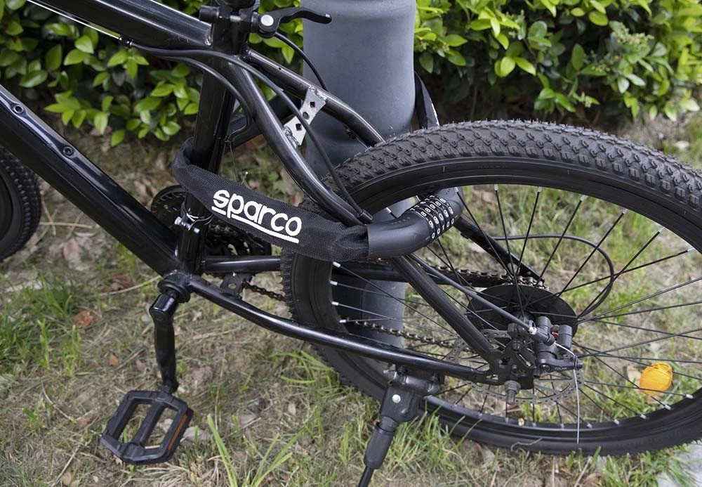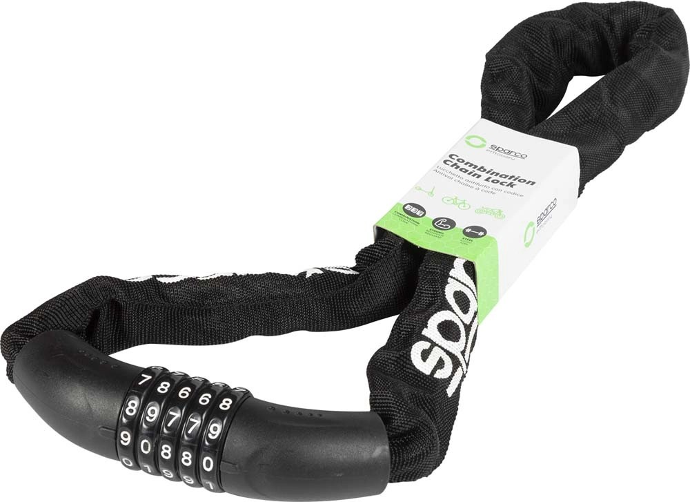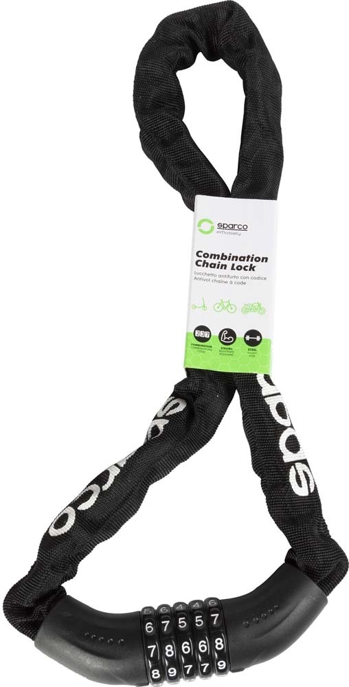 Sparco lucchetto nero a catena per bicicletta in acciacio zinco ottone ABS con combinazione. 4x7,5x37 cm