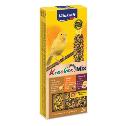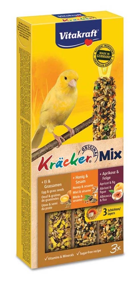 I popolari Kräcker® offrono una gustosa combinazione di semi pregiati, uova e frutti, rappresentando una delizia autentica e una variazione apprezzata nel menu dei canarini. Per un`alimentazione più varia, questa confezione tripla propone tre gusti diversi: Uovo & semi di prato, Albicocca & fichi, e Miele & sesamo.