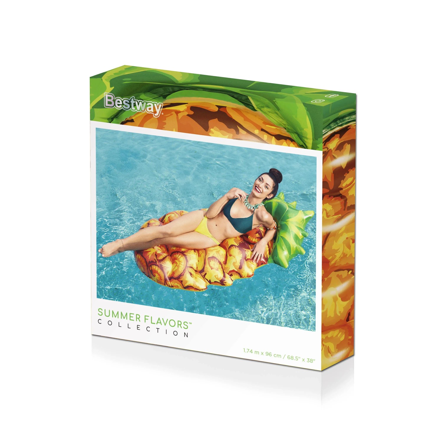 Assapora un dolce sapore dei tropici con il galleggiante per piscina Bestway® Pineapple! Rilassati con stile su questo galleggiante dalla forma divertente. La grafica gustosa e realisticamente stampata è perfetta per la tua prossima giornata in piscina, lago o spiaggia. Prendine uno e trascorri la giornata al sole!