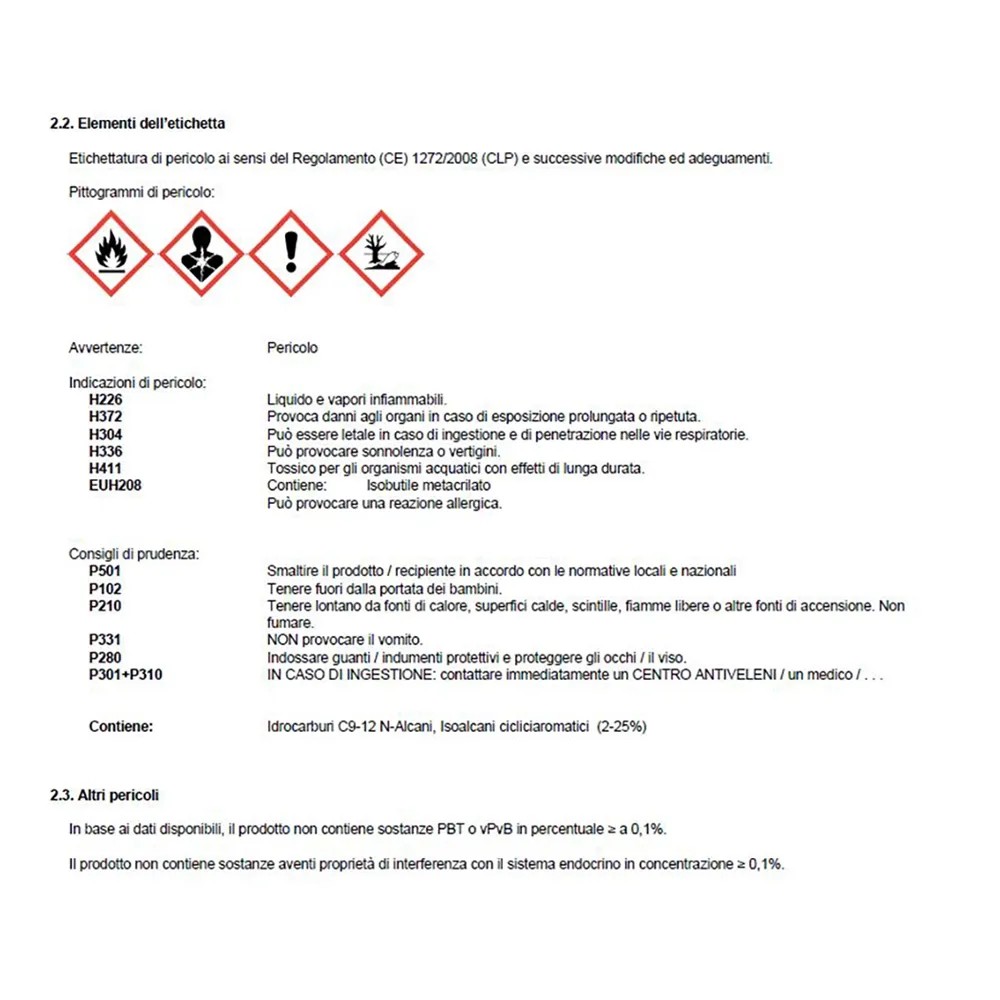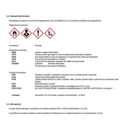 Proteggere le mani con guanti da lavoro di categoria III (Nitrile ) .Non mangiare, nè bere, nè fumare durante l'impiego.