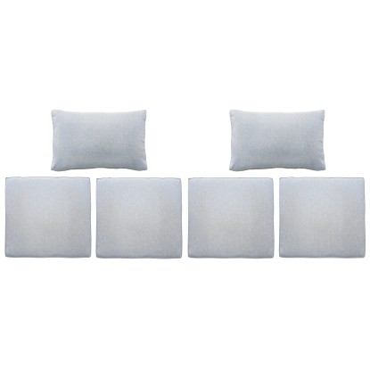 Con il set di cuscini da 6 pezzi in Grigio chiaro puoi ridisegnare i cuscini del set di mobili da balcone Olea. Servono come sostituzione dei rivestimenti usurati o creano un nuovo look. Il set è composto da due rivestimenti per i cuscini per schienali delle dimensioni di 35 cm x 55 cm x 22 cm e quattro fodere per cuscini delle dimensioni di 9 cm x 55 cm x 55 cm (ciascuno H x L x P). I rivestimenti sono realizzati in 100 % poliestere. Il materiale risulta tanto insensibile quanto resistente. Lo sporco può essere rimosso manualmente.