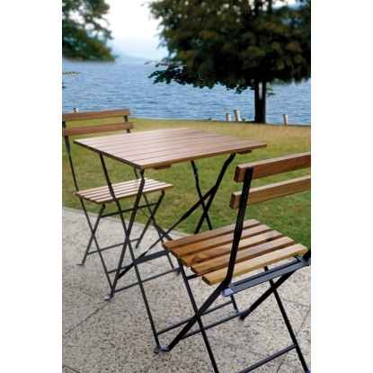 Tavolo e sedie da giardino Bistrò in ferro e acacia nero 2 posti