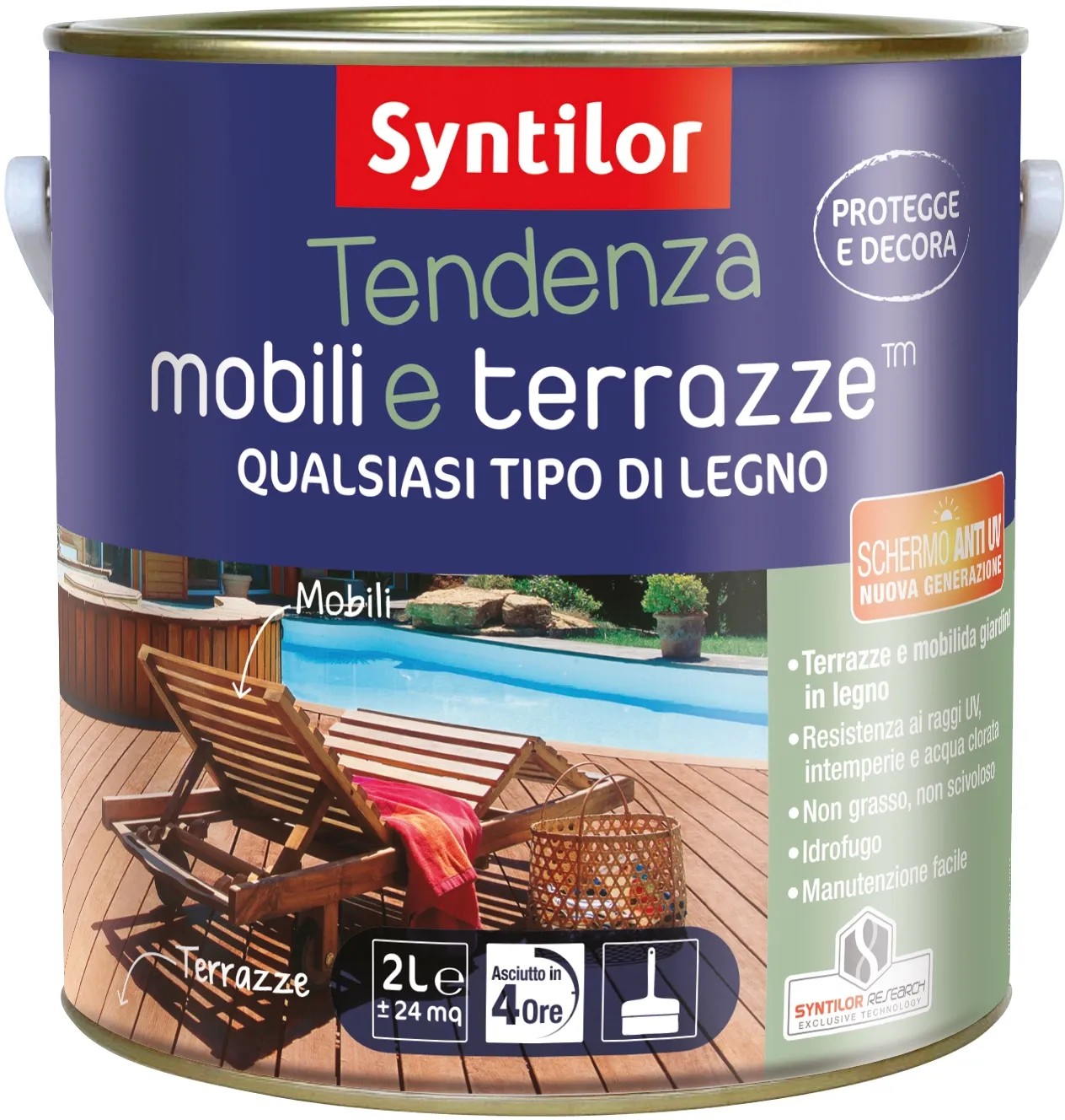 La vernice all`acqua per legno da esterno. Ideale per rinnovare e decorare tutti gli elementi di legno del giardino, sia superfici orizzontali che verticali, anche calpestabili. Resistente agli UV, alle intemperie e all`acqua clorata. Si consiglia di agitare bene prima e durante l`applicazione. Applicare un primo strato sottile nel senso delle fibre del legno e lasciare penetrare da 20 a 30 minuti. Applicare il secondo strato non appena il legno perde il suo aspetto umido. Per ottenere un`impregnazione ottimale del legno, accertarsi che il medesimo sia asciutto e che non vi sia un rischio di pioggia per le 24 ore seguenti il secondo strato. Non applicare sotto un sole molto caldo.