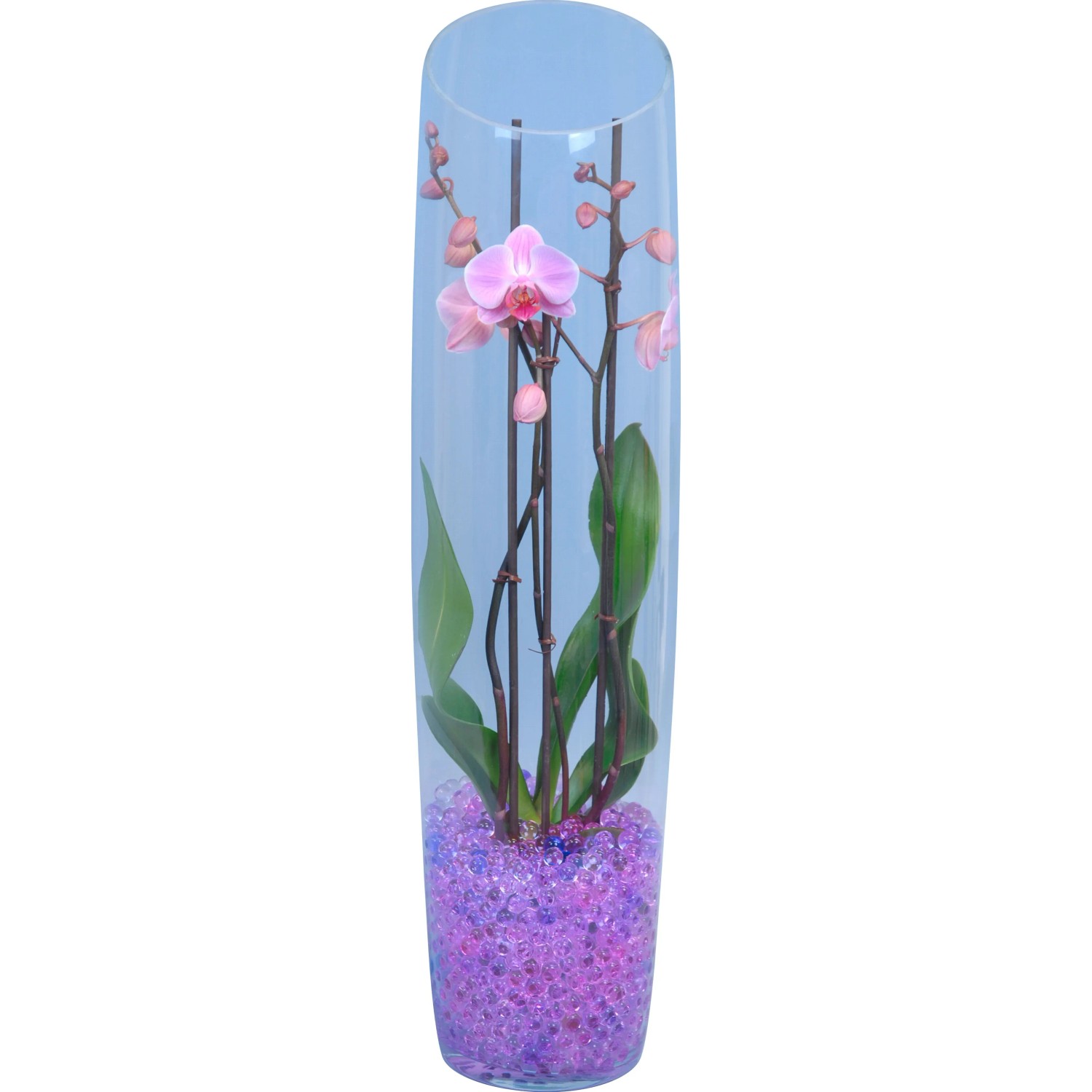 Orchidea Phalaenopsis 2 steli lilla vaso in vetro Ø 18 cm
