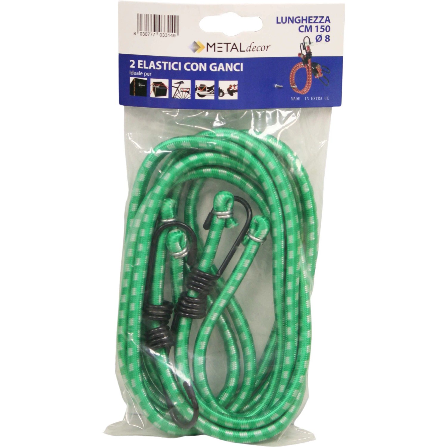 Confezione 2 elastici portabagagli con gancio in metallo lungh. 150 cm
