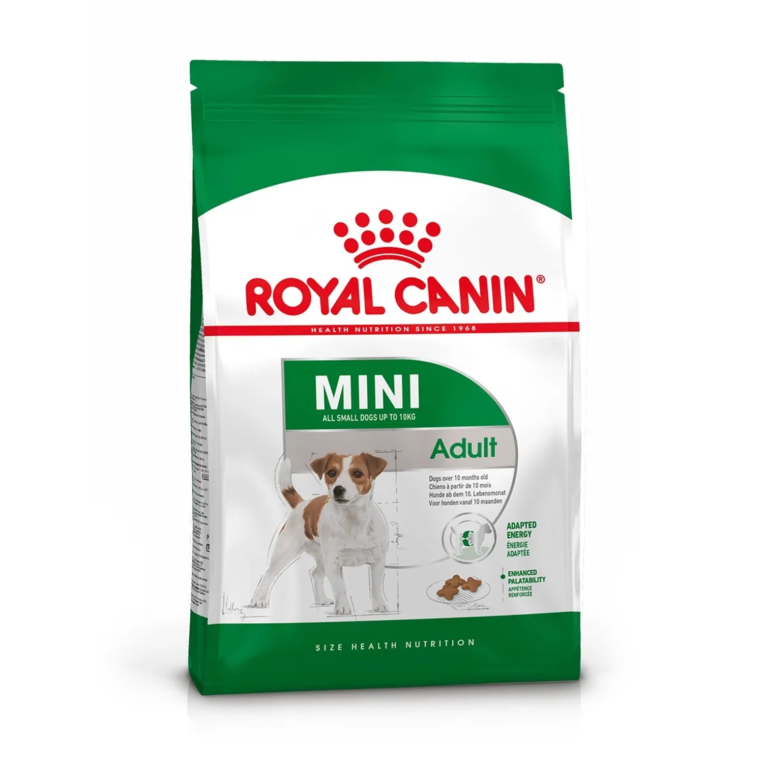 ROYAL CANIN® Mini Adult è stato appositamente formulato per soddisfare le esigenze nutrizionali del tuo cane adulto di taglia piccola (fino a 10 kg di peso) dall'età di 10 mesi fino ai 8 anni. Questo alimento, grazie al contenuto adattato di nutrienti specifici, aiuta i cani di piccola taglia a mantenere il peso ideale. È arricchito con L-Carnitina che favorisce un sano metabolismo dei grassi.