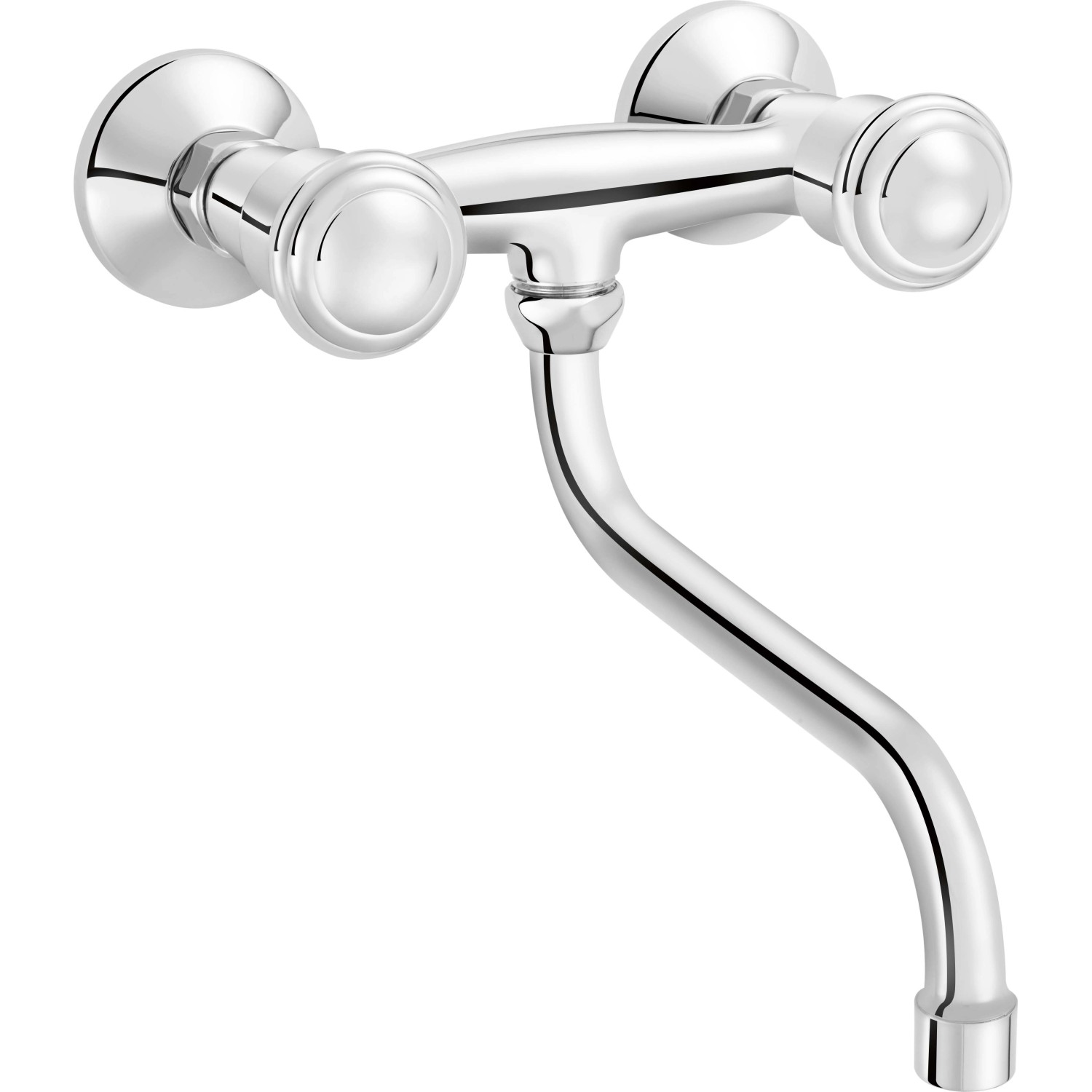 Il rubinetto da cucina baliv KI-5100 salta subito all`occhio con le sue due maniglie di bell`aspetto. Queste ti consentono di regolare facilmente la temperatura dell`acqua perfetta per te. La bocca lunga del miscelatore a parete è curvata al centro. Non ha solo un aspetto elegante, ma ti facilita anche l`uso. La bocca d`erogazione del rubinetto può essere ruotata di 180°. In questo modo potrai raggiungere comodamente tutti i punti nel lavello e pulirlo facilmente.