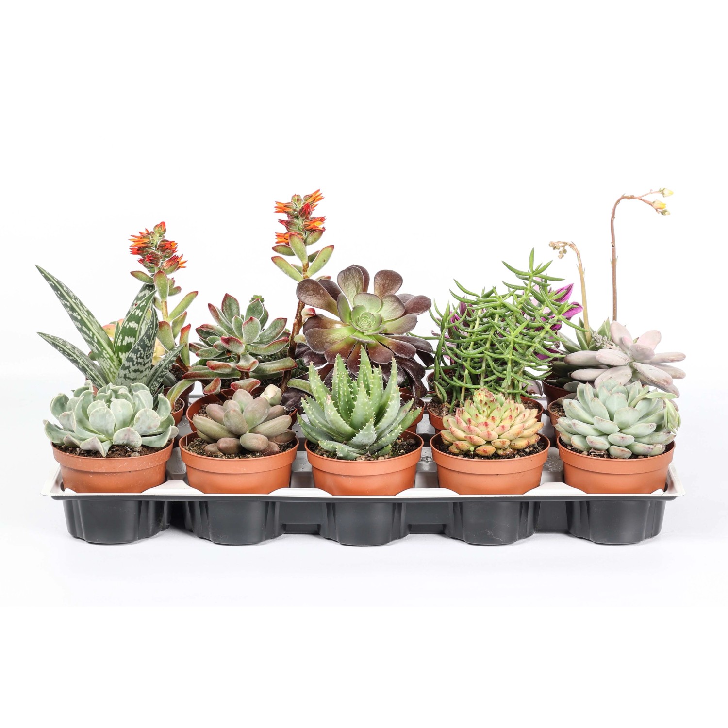 L`assortimento di succulente di diverse famiglie è un affascinante e variegato insieme di piante grasse, selezionate per la loro bellezza e diversità. Le famiglie includono Crassula, Echeveria, Sedum, Kalanchoe, Senecio e altre, creando una collezione visivamente stimolante e interessante.