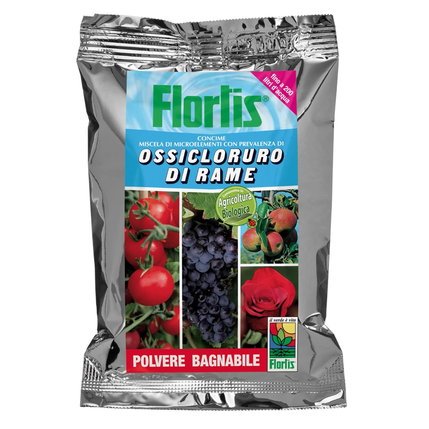 L`ossicloruro di rame Flortis è un concime a base di ossicloruro di rame formulato in polvere bagnabile, da utilizzare per prevenire e controllare le carenze di rame. Il rame è un elemento essenziale per la vita di tutte le piante: è un costituente di importanti enzimi, è necessario per la sintesi di clorofilla e contribuisce alla stimolazione delle difese delle piante dai parassiti. Le carenze di rame si manifestano con ingiallimenti e formazione di macchie sulle foglie e atrofie dei giovani getti. I sintomi delle carenze di rame compaiono più spesso nei terreni ricchi di sostanza organica e aventi reazione alcalina. L`ossicloruro di rame svolge anche un`importante azione nella prevenzione e cura delle malattie crittogamiche. Sciogliere da 4 a 5 g di polvere in 1 litro d`acqua e con la soluzione ottenuta nebulizzare la pianta. Eseguire 2/3 trattamenti durante il ciclo colturare, all`inizio della stagione o all`apparire dei primi sintomi. Non effettuare applicazioni durante la fioritura. Ripetere i trattamenti in caso di forti piogge. Non miscelare con prodotti a reazione alcalina. Prima di effettuare miscele con altri concimi fogliari o fitofarmaci, effettuare una prova di compatibilità.