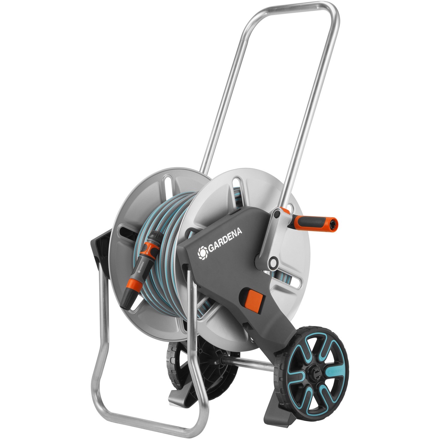 Carrello avvolgitubo Gardena AquaRoll M Metal con tubo 25 m lancia e raccordi
