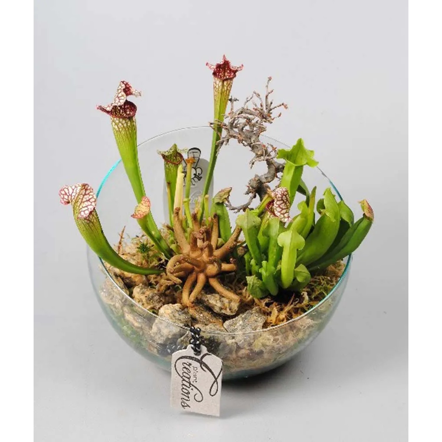 Senza necessità di fertilizzanti grazie alla sua capacità di ottenere nutrienti dagli insetti, la Sarracenia su vetro è l`ideale per chi cerca una pianta che combini estetica e funzionalità.