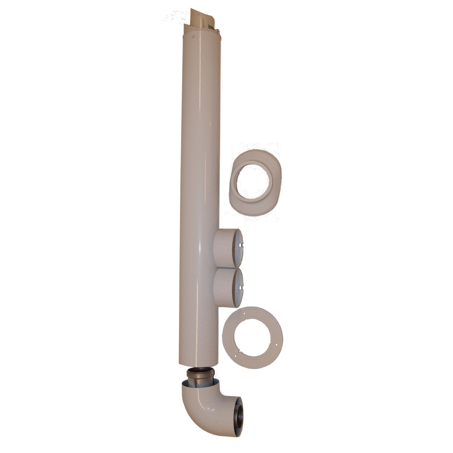 Il sistema coassiale 60/100 per scaldabagni a camera stagna Vaillant modello TurboMag Plus è un kit completo di componenti essenziali per l'evacuazione dei gas di scarico e l'apporto di aria di combustione. Con la curva, il tubo coassiale e il terminale, il sistema garantisce un funzionamento sicuro ed efficiente dello scaldabagno.