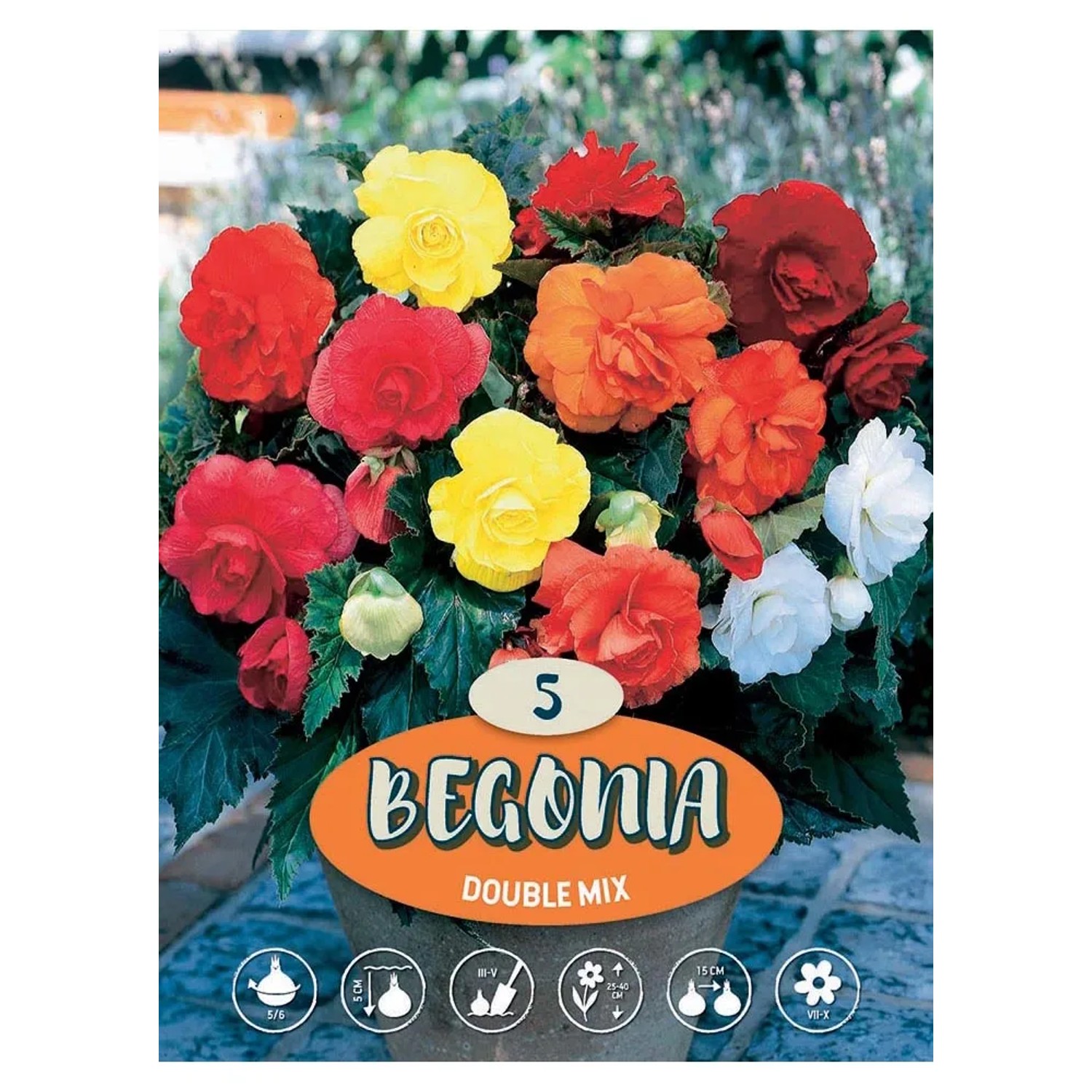 La begonia "Doppio Mix" è un fiore estivo dalle meravigliose sfumature di colore, alto fino a 35 cm. Il bulbo va piantato in primavera ad una profondità di più o meno 5 cm, e il terreno dovrà essere drenante, come per tutti i bulbi, per evitare che la pianta marcisca.