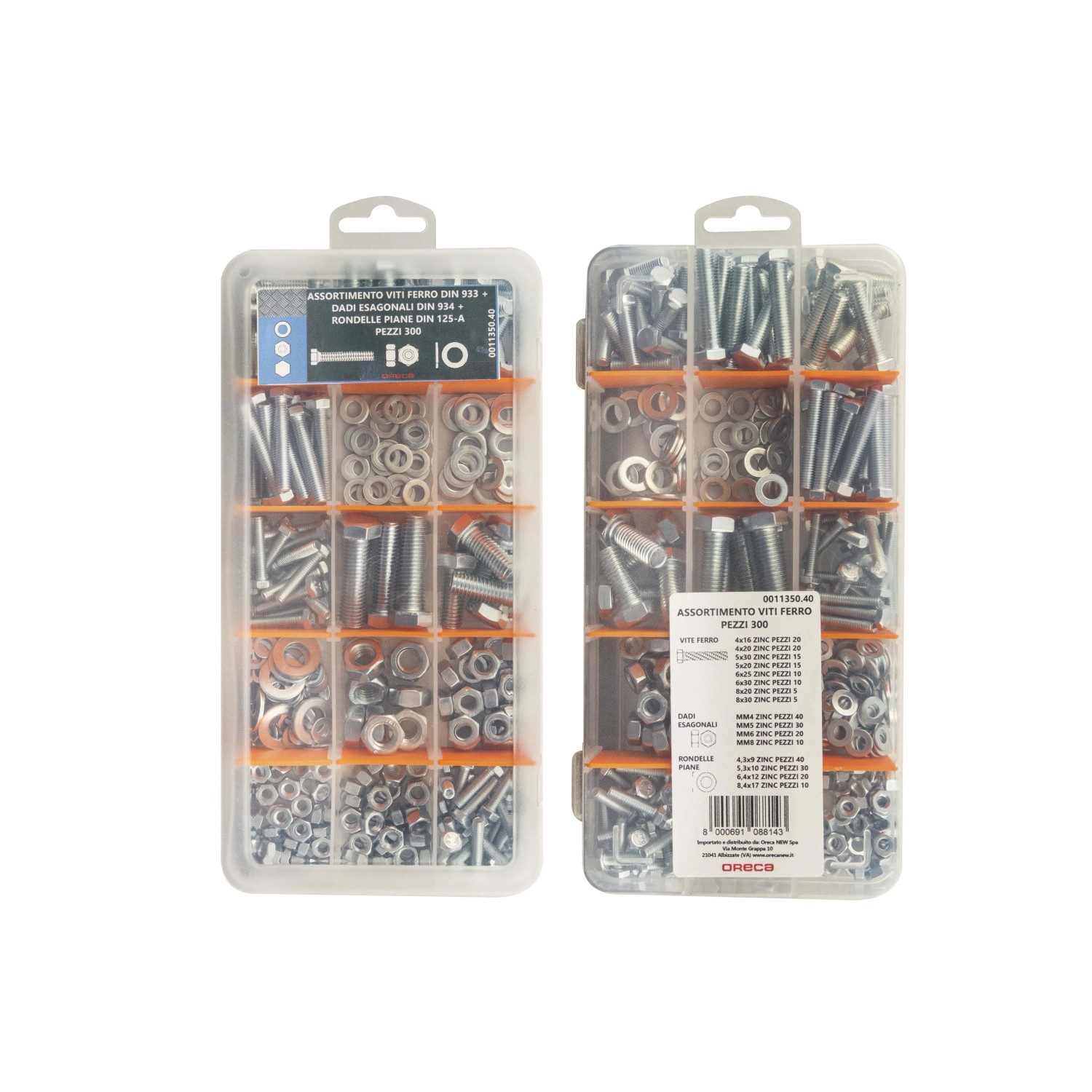 Viti ferro testa esagonale DIN 933 con dado esag. e rondella piana