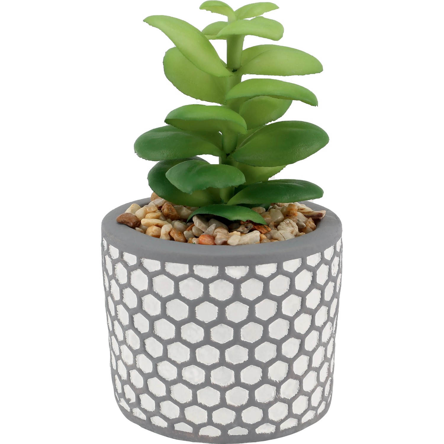 Vaso per piante con decorazione a nido d`ape 6x6x9 cm grigio con pianta