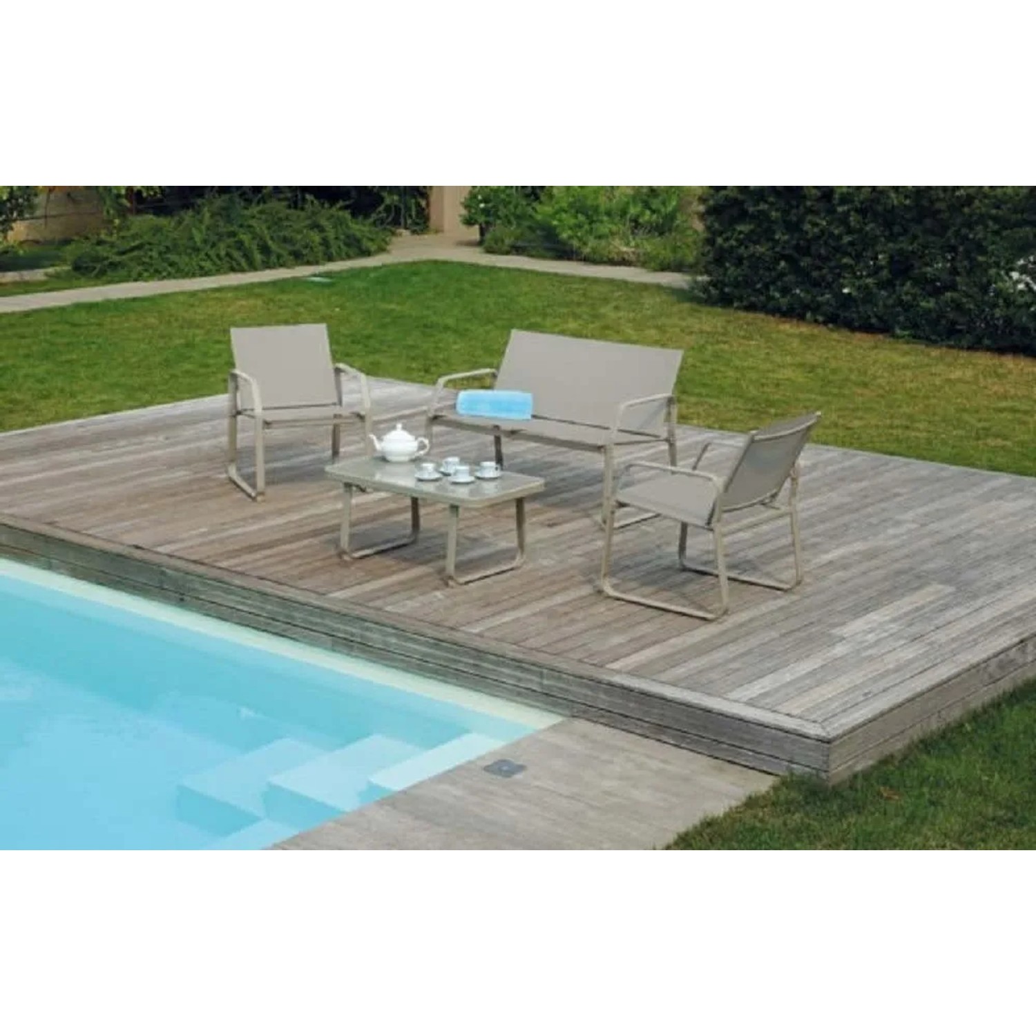 Salotto da giardino in ferro epoxy tortora 4 posti