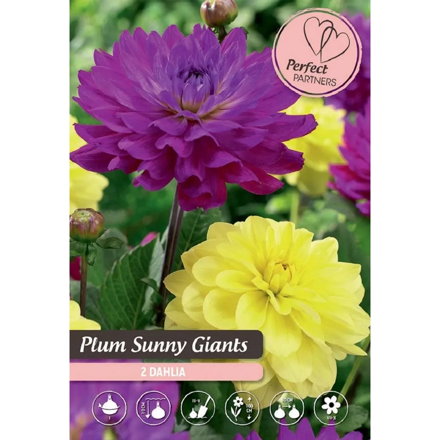 La dalia "Plum Sunny Giants" è un fiore estivo, il cui bulbo va piantato in primavera ad una profondità di, più o meno, 10 cm. Il terreno deve essere ben drenato, come per tutti i bulbi. È perfetta per le aiuole fiorite o le bordure e si abbina bene con le piante perenni. Il periodo della fioritura ha luogo nei mesi di luglio e agosto. Il fiore può crescere fino ad un massimo di 100 cm e può essere piantato all`interno di un vaso. Non è adatto agli ambienti interni.