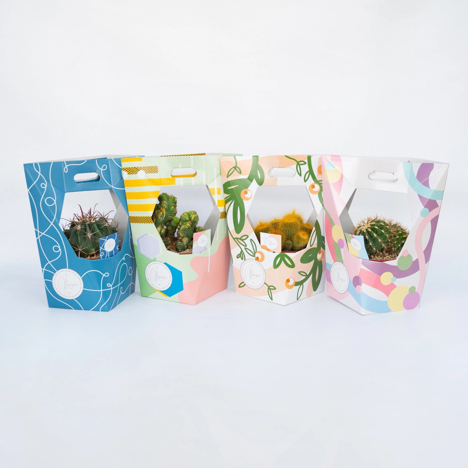 La collezione di cactus spinosi Mani, è studiata per accompagnare la bellezza della pianta con l`eleganza di una confezione pensata come idea regalo. Su ogni imballo c`è una diversa frase ed un talloncino con le istruzioni per la cura della pianta. Le piante di questa collezione sono dei veri e propri cactus, piante succulente che hanno delle spine per difendersi e per ridurre la dispersione dell`acqua. Fanno parte di questo gruppo piante della famiglia delle Cactaceae come gli Echinocactus, le Mammillaria e i Ferocactus. Ascolta Mani: "Un cactus è bello se è rigoglioso. Per avermi sempre al meglio tienimi allenato. Bagnami una volta al mese durante l`inverno. Tienimi in casa in un luogo fresco, lontano da fonti di calore (resisto fino a due gradi sopra lo zero!). Mi piace la luce quindi cerca di darmene il più possibile, altrimenti mi allungo tanto e divento brutto. Il concime mi piace in primavera e poco in autunno, non voglio mangiare troppo! È facile prendersi cura di me e tu sei la persona migliore a cui potessi essere affidato! In primavera, quando mi avrai messo all`aria aperta, bagnami ogni due settimane e mettimi pure al sole diretto ma cerca di farlo gradualmente. Non mi tagliare le spine ché mi fai male! Non rinvasarmi subito, aspetta almeno un anno per rinvasarmi, sto bene e sono comoda in questo vaso"