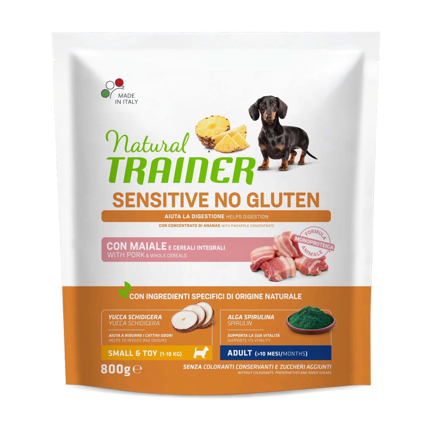 Cibo secco per cani Natural Trainer sensitive no gluten maiale 800 g