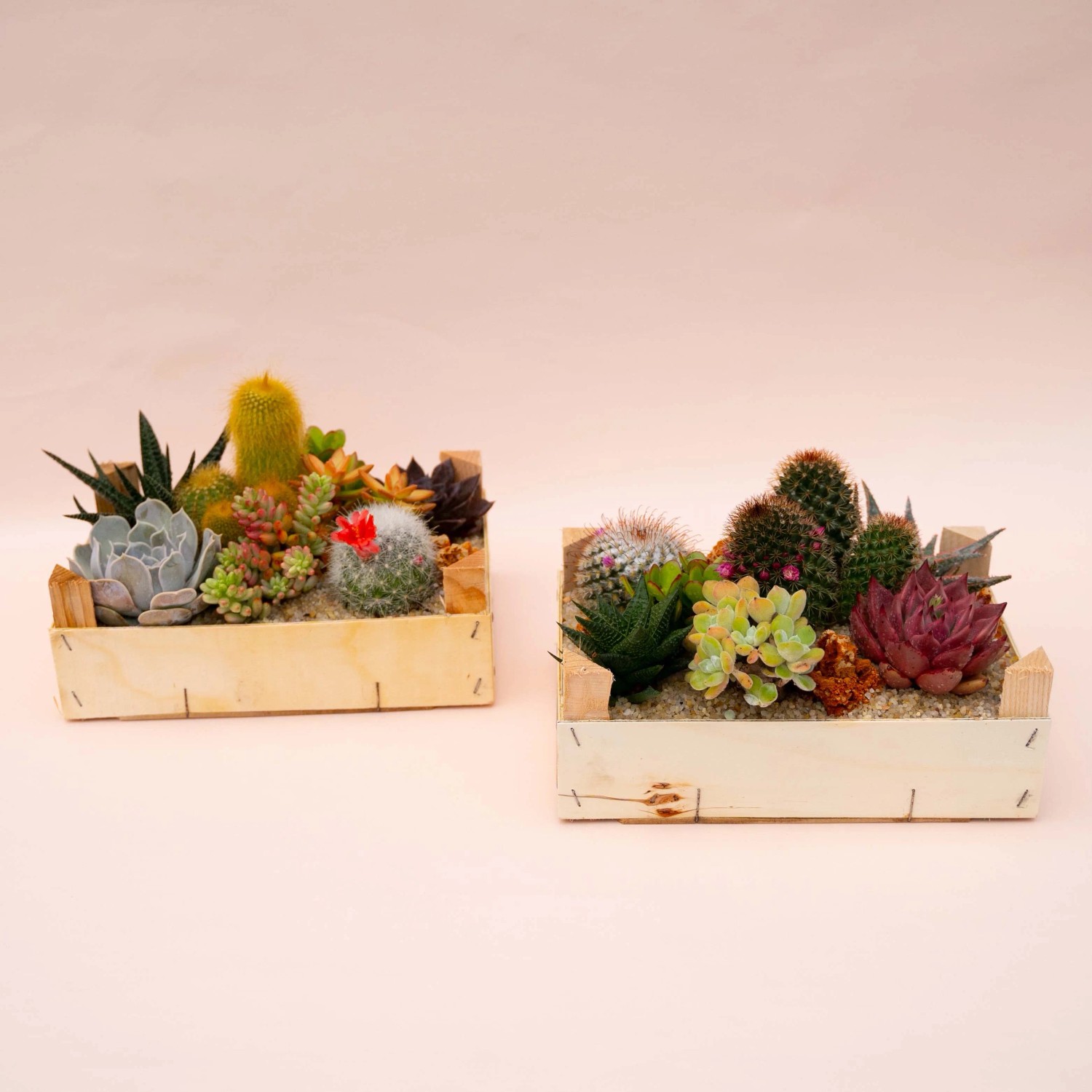 Composizione di piante grasse succulente e spinose in una cassetta di legno è un`idea decorativa affascinante e versatile, perfetta per arricchire casa, balcone o terrazzo. Ogni composizione offre una combinazione unica di forme, colori e texture che si armonizzano perfettamente con il calore della terracotta, creando un elemento di design naturale e sofisticato. Cura e Manutenzione: - Esposizione: Posiziona la composizione in un luogo soleggiato dove riceva almeno 4-6 ore di luce diretta al giorno, da primavera ad autunno. La luce solare favorisce la crescita e mantiene i colori vivaci. - Protezione invernale: Durante i mesi freddi, sposta la composizione in un ambiente interno luminoso, lontano da correnti fredde e gelate, per proteggere le piante. - Annaffiatura: Annaffia solo quando il terriccio è completamente asciutto, evitando ristagni d`acqua. Assicurati che la composizione abbia un buon drenaggio e rimuovi l`acqua in eccesso dopo ogni irrigazione. Questa composizione è ideale per chi cerca un elemento decorativo dallo stile Country e Naturale, facile da curare, capace di aggiungere un tocco di verde a qualsiasi spazio.