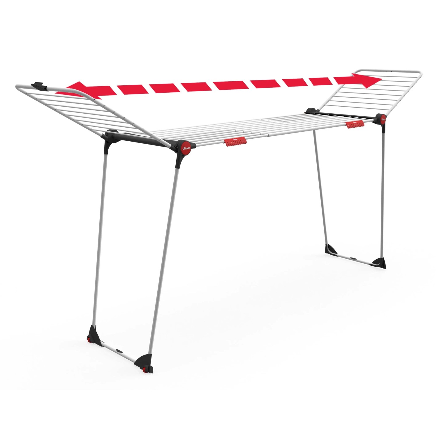 Quando non in uso, lo stendibiancheria può essere riposto facilmente grazie al blocco sulle ali, che consente di ridurre l`ingombro e ottimizzare lo spazio. Questo design salvaspazio è perfetto per chi ha poco spazio disponibile in casa.