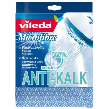 Vileda Microfibre anticalcare è il nuovo e rivoluzionario panno realizzato per pulire lo sporco e rimuovere efficacemente tutte le macchie di calcare che si depositano sulle superfici.