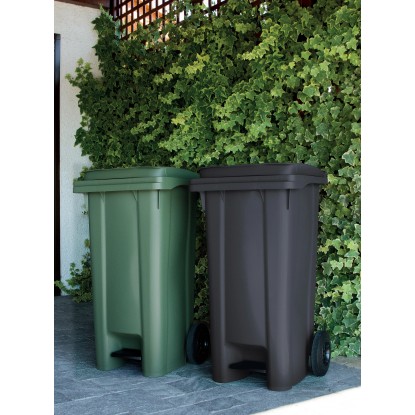 Il bidone carrellato da 120 litri è un prodotto estremamente pratico e funzionale per l`utilizzo outdoor, adatto sia per la raccolta dei rifiuti che per il contenimento dello sfalcio dell`erba e del fogliame. Grazie al comodo maniglione e alle ruote in gomma, lo spostamento diventa semplice e agevole. E` di apertura del coperchio a pedale. Il prodotto è completato da un utile anello ferma sacco e da un tappo apribile collocato sul fondo che permette lo scolo dell`acqua dopo il lavaggio. E` un valido aiuto nel tenere in ordine le zone verdi della casa ed è particolarmente semplice nella pulizia e nell`impiego.