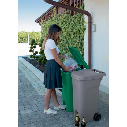 Urban System è il nuovo bidone carrellato da 80 lt ideale per l`utilizzo outdoor, di facile impiego sia in terrazzo o balcone che in giardino. È dotato di comode ruote, di un maniglione posteriore che permette uno spostamento più agevole, e di un anello ferma sacco utile per la raccolta differenziata dei rifiuti. E` dotata di un sistema di apertura del coperchio a pedale. Urban System è pratico e funzionale, semplice da pulire e perfetto per qualsiasi esigenza: dalla raccolta differenziata al contenimento del rifiuto verde.
