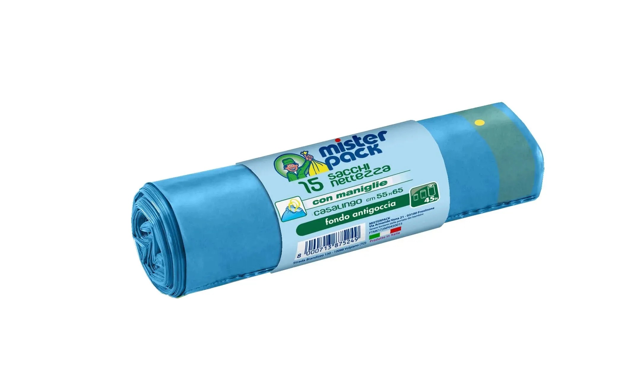 Sacchi spazzatura con maniglie Misterpack 45 l azzurro 15 pz