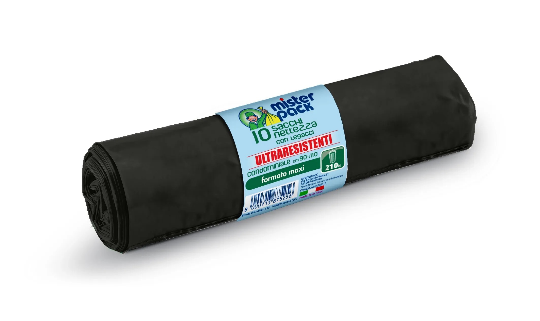 Sacchi spazzatura ultresistenti Misterpack 210 l nero 10 pz