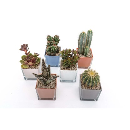 Cactus e succulente - Piante grasse vaso decorativo vetro 8x8 cm