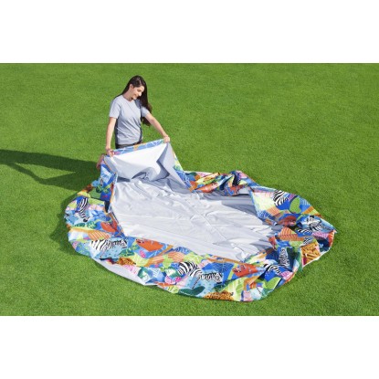 Prepara il tuo giardino per un`estate indimenticabile con la piscina fuori terra Steel Pro di Bestway®, un`opzione affidabile e resistente per il divertimento di tutta la famiglia. Ideale per il giardino o il cortile, questa piscina offre uno spazio accogliente e divertente per rilassarsi e giocare sotto il sole estivo. Forma rotonda, grafica colorata a tema animali sulla fodera esterna per un tocco vivace e divertente.