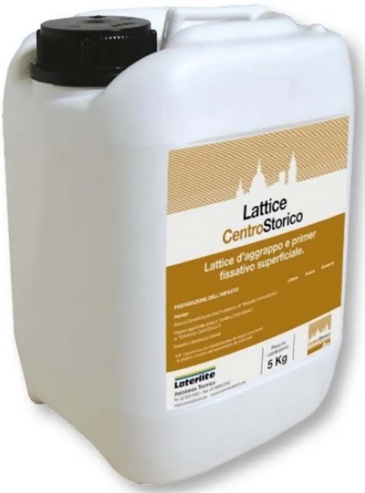 Lattice centrostorico e` un`emulsione a base di resine sintetiche di colore bianco, idonea per usi interni ed esterni per i seguenti impieghi: promotore d`adesione, fissativo superficiale, impregnante superficiale.