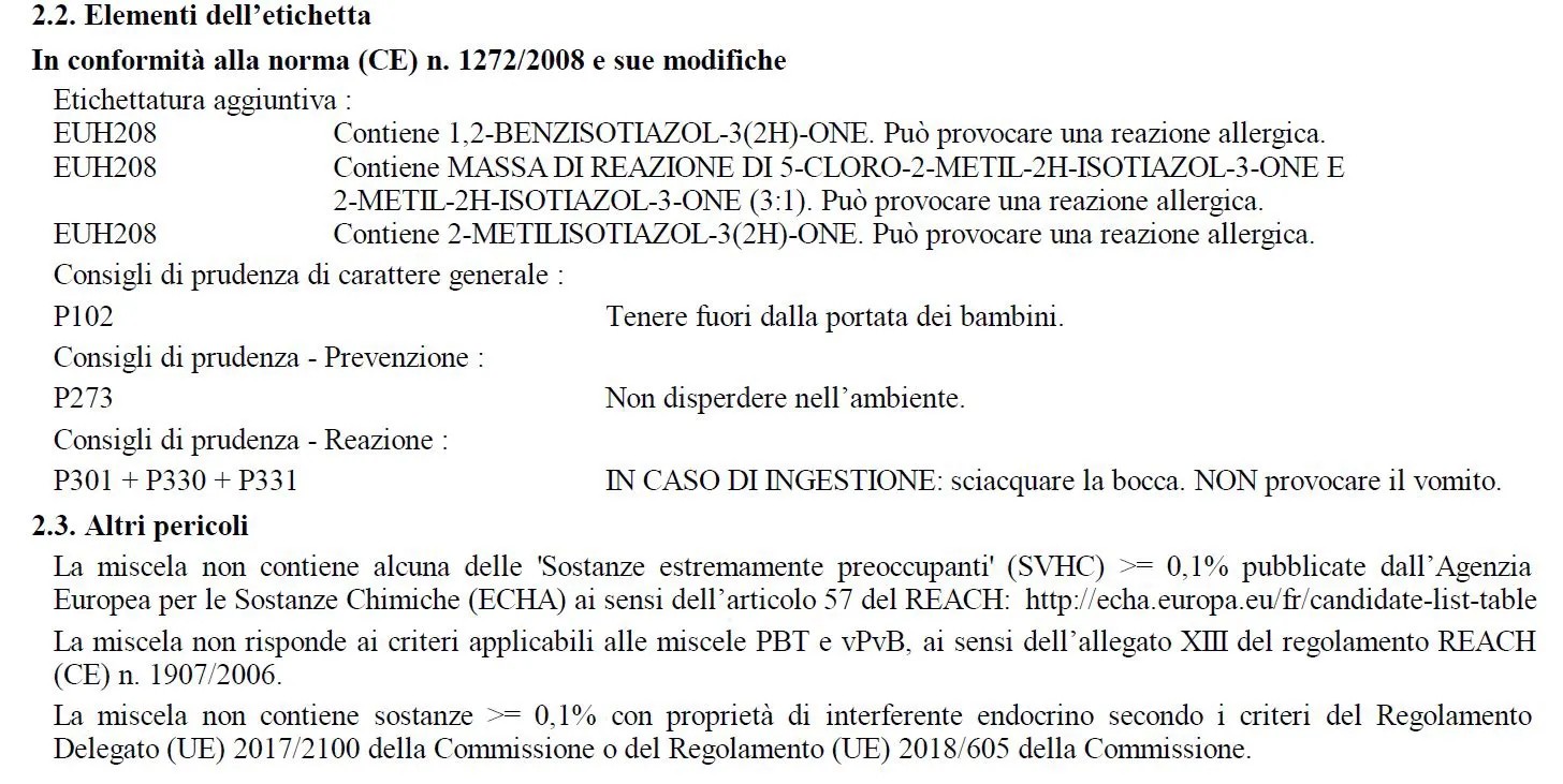 | Adatto per gioco bambini (omol. DIN EN 71-3): | Non adatto per giocattoli |