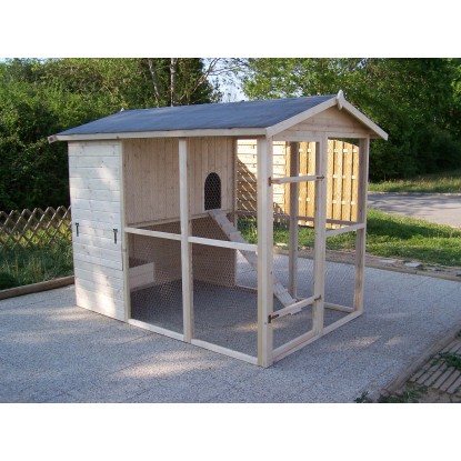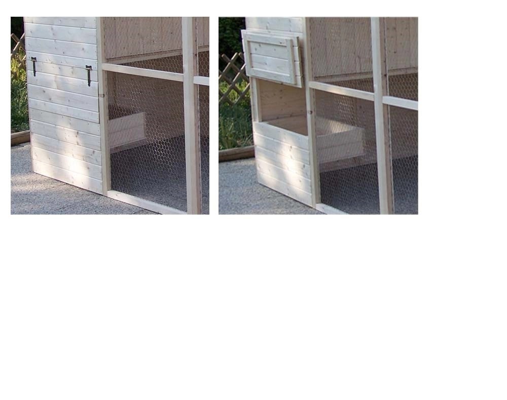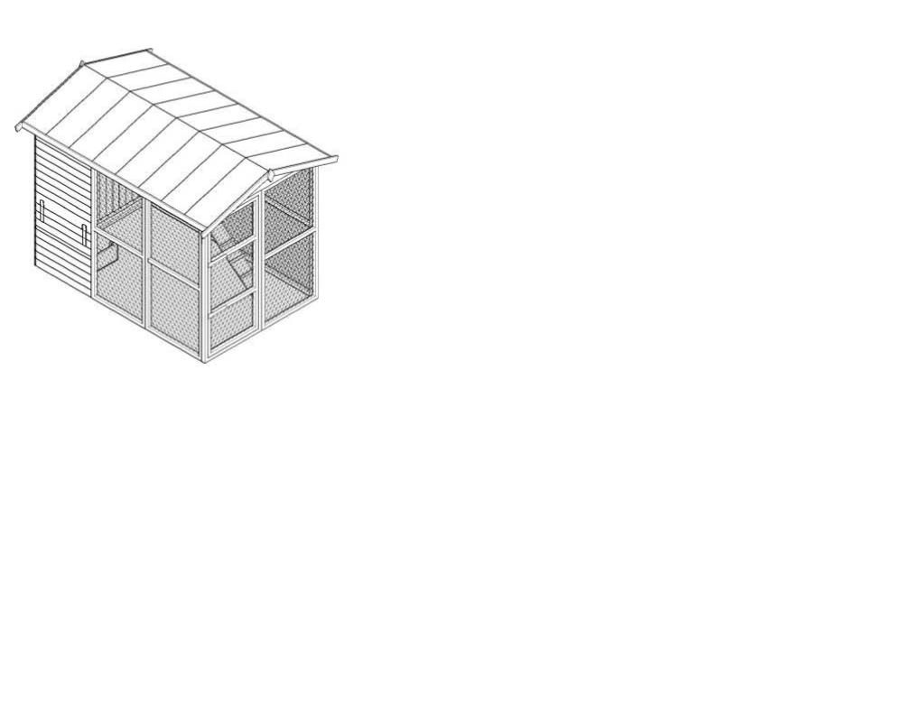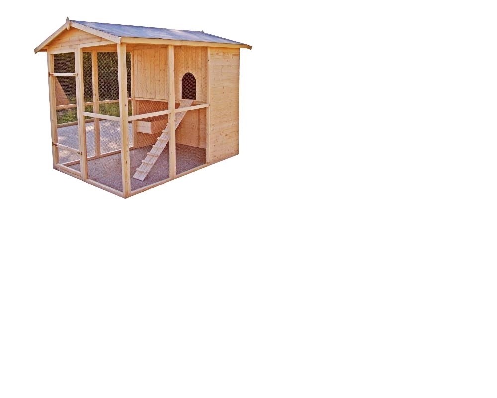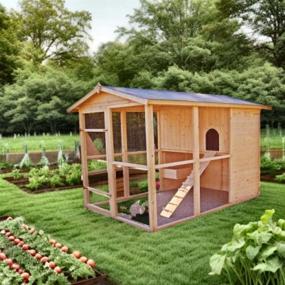 La struttura è completata da griglie zincate a maglia da 25 mm, una pratica rampa di accesso, chiusura sicura dello spazio notte, un nido di cova e tre posatoi, offrendo agli animali un ambiente sicuro, confortevole e funzionale, perfetto per l`allevamento domestico.