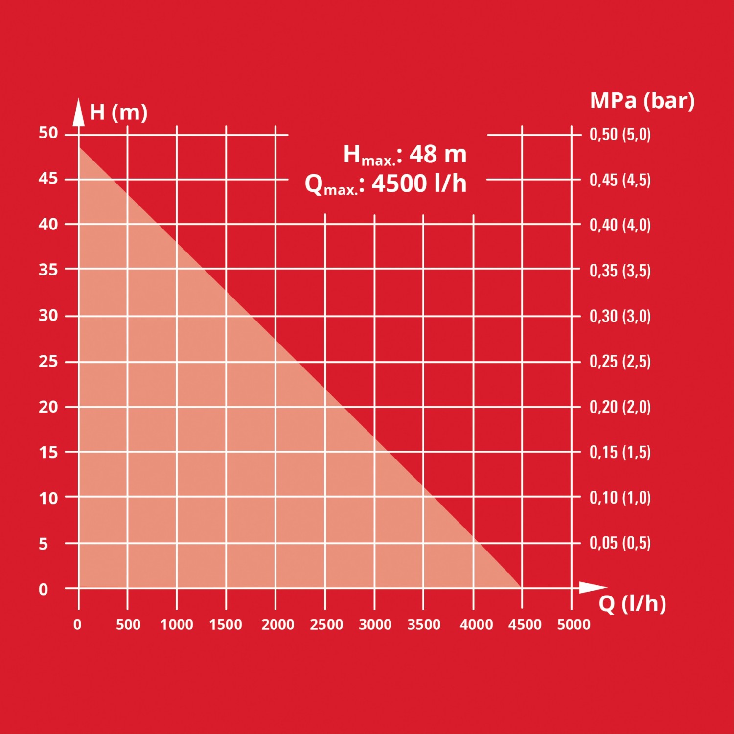 - Potenza Elevata: Con 1.050 Watt, la pompa può erogare fino a 4.500 litri di acqua all`ora, assicurando un`irrigazione efficace.