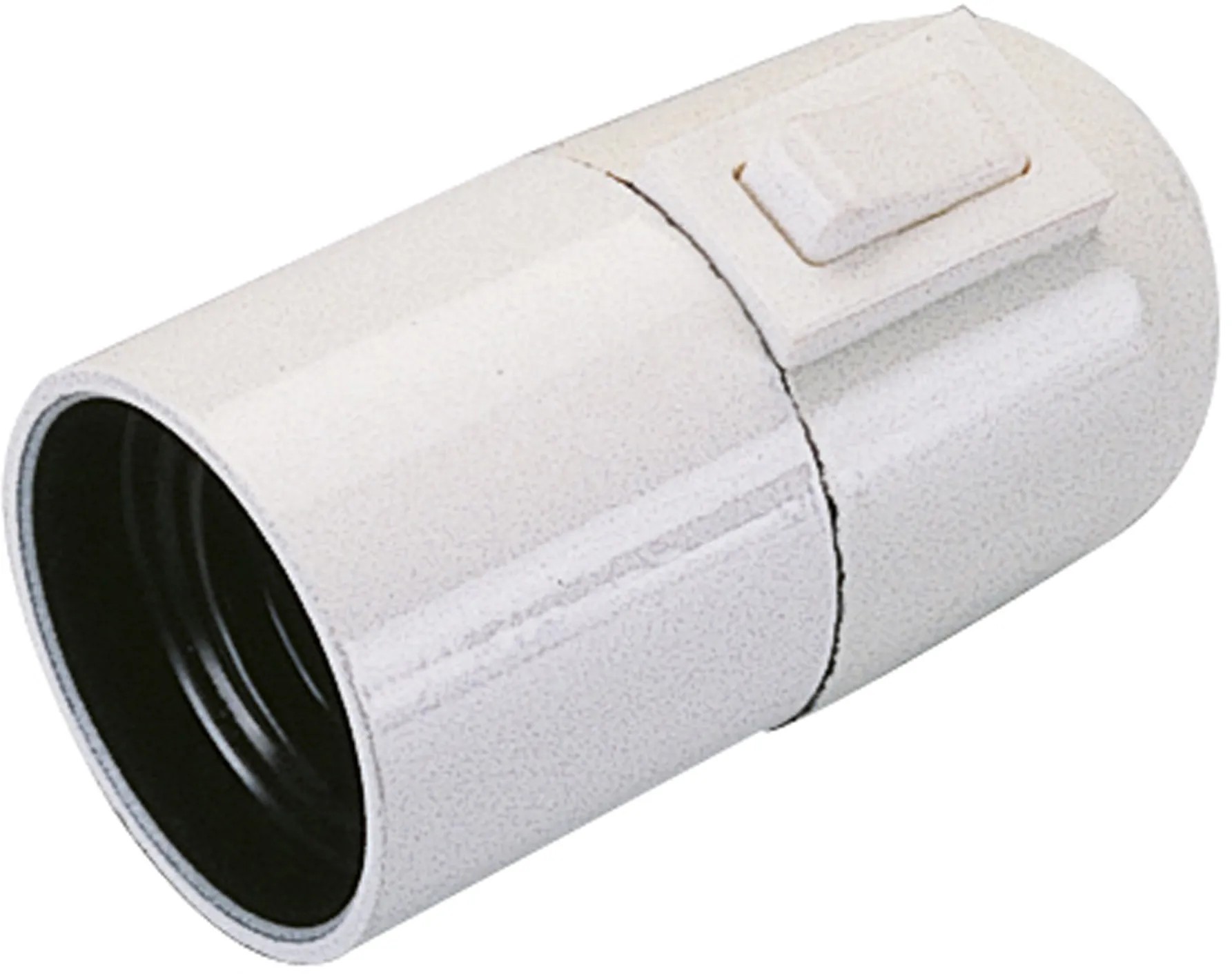 Portalampada in materiale plastico 250 V~, attacco E27, corpo liscio con interruttore.Corrente nominale: 4 A.Massima temperatura d`esercizio: 165 °C. Morsetti a vite e contatti in ottone.