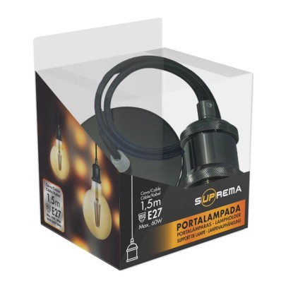 Portalampadina E27 sospeso nera 1,5 m max.60W
