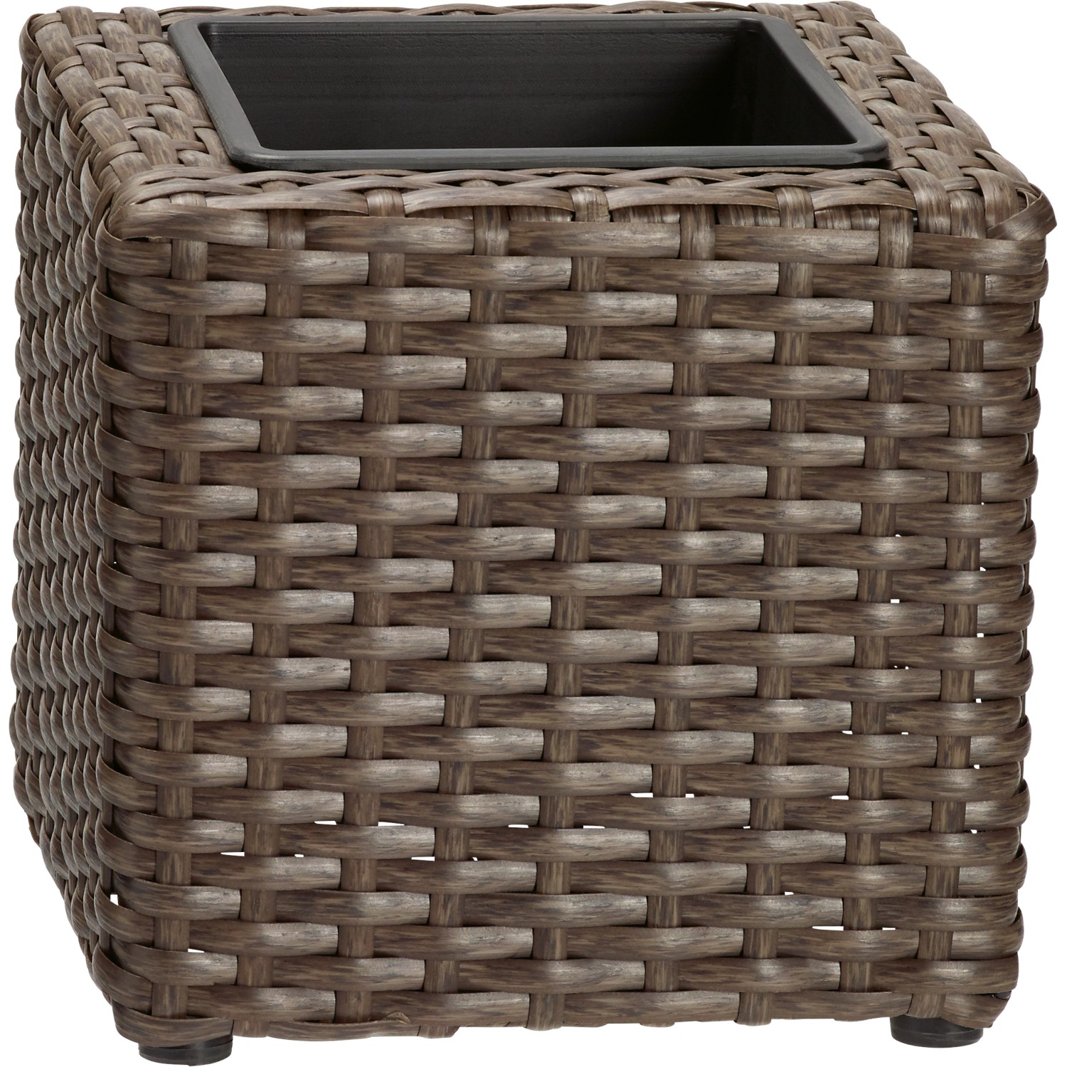 Coprivaso decorativo in plastica di qualità con elegante effetto rattan. Resistente ai raggi UV e agli agenti atmosferici, si presta all`uso in tutte le stagioni, sia all`interno che all`esterno. Dotato di un pratico inserto in plastica impermeabile all `acqua. Ideale per abbellire il vostro giardino, il balcone o il davanzale della finestra.
