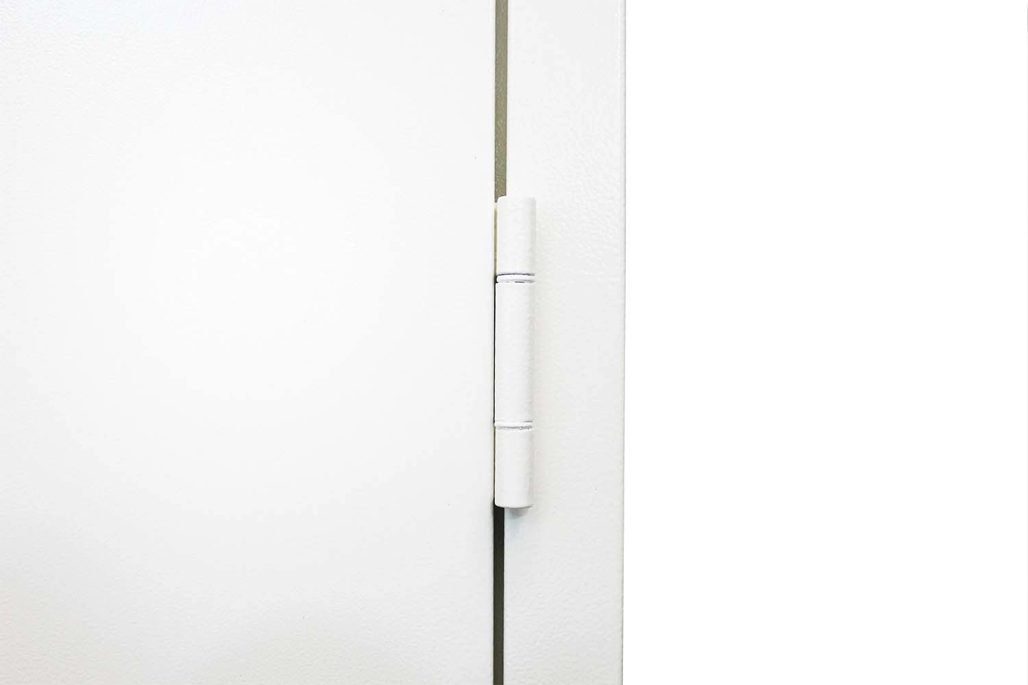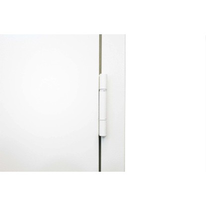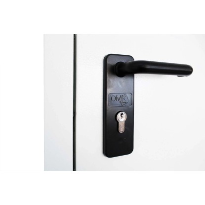 Porta multiuso tamburata, zincata e verniciata a polveri in tinta RAL 9010 goffrato antigraffio. Completa di maniglie e cilindro con tre chiavi in dotazione. Porta completamente reversibile anche a posa avvenuta.